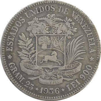 سکه 5 بولیوار 1936 - VF35 - ونزوئلا