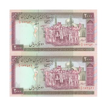 اسکناس 2000 ریال (نمازی - نوربخش) فیلیگران الله - جفت - UNC63 - جمهوری اسلامی