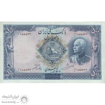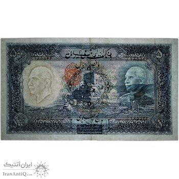 اسکناس 500 ریال شماره فارسی - تک - AU58 - رضا شاه