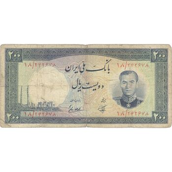 اسکناس 200 ریال 1337 - تک - VF25 - محمد رضا شاه