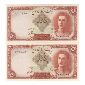 اسکناس 5 ریال - جفت - UNC62 - محمد رضا شاه
