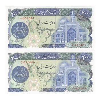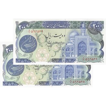 اسکناس 200 ریال (اردلان - مولوی) بدون فیلیگران - جفت - UNC63 - جمهوری اسلامی