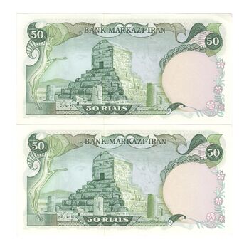 اسکناس 50 ریال (آموزگار - یگانه) - جفت - UNC63 - محمد رضا شاه