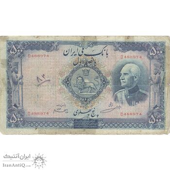 اسکناس 500 ریال شماره لاتین - تک - F - رضا شاه