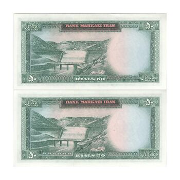 اسکناس 50 ریال (آموزگار - سمیعی) - جفت - AU55 - محمد رضا شاه