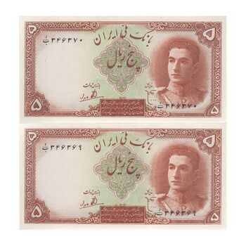 اسکناس 5 ریال - جفت - UNC63 - محمد رضا شاه