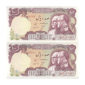 اسکناس 100 ریال پنجاهمین سال - جفت - UNC62 - محمد رضا شاه