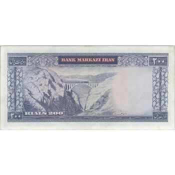 اسکناس 200 ریال (آموزگار - سمیعی) نوشته سیاه - تک - AU50 - محمد رضا شاه