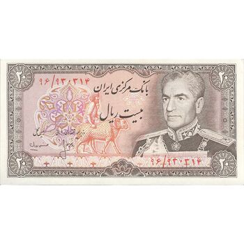mohammad reza shah 20 rials (ansari - mehran) iran banknote - AU58