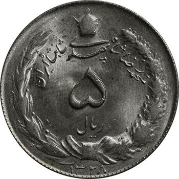 سکه 5 ریال 1328 - MS63 - محمد رضا شاه