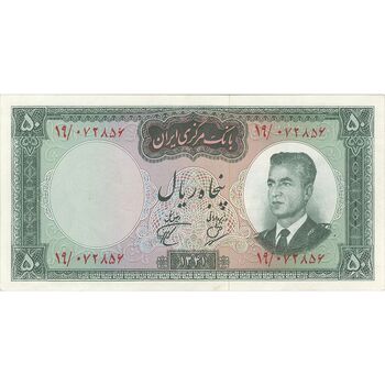 mohammad reza shah 50 rials 1341 (large date) iran banknote - UNC62