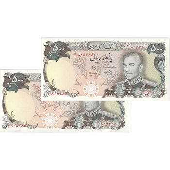 اسکناس 500 ریال (یگانه - مهران) - جفت - UNC62 - محمد رضا شاه