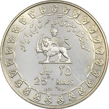مدال نقره 25 ریال جشنهای 2500 ساله 1350 - PF63 - محمد رضا شاه