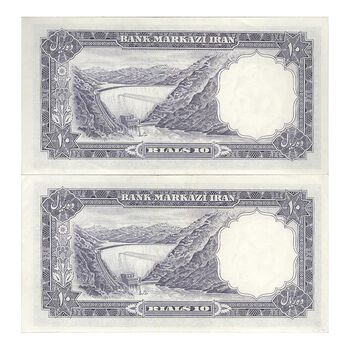 اسکناس 10 ریال 1340 - جفت - AU58 - محمد رضا شاه