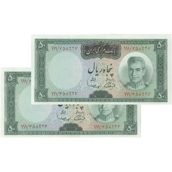 اسکناس 50 ریال (آموزگار - سمیعی) - جفت - UNC64 - محمد رضا شاه