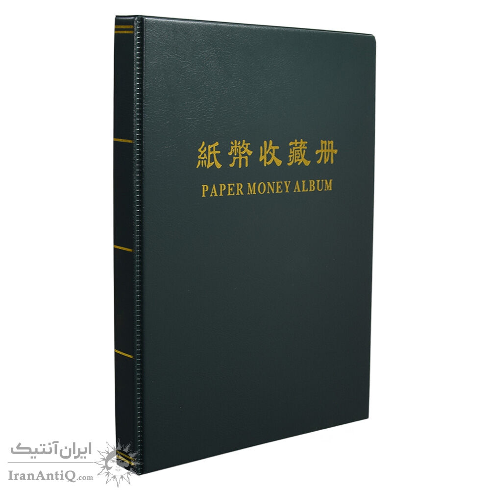 این آلبوم اسکناس ساخت چین است. رنگ آن مشکی و تعداد برگ 10 عدد (20 صفحه) می باشد که 3 جایگاه برای قرار دادن اسکناس در هر طرف برگه ها وجود دارد. حداکثر گنجایش هر جایگاه 8.5 در 20.8 سانتیمتر است. ابعاد این محصول 29.3 در 23 سانتیمتر می باشد.