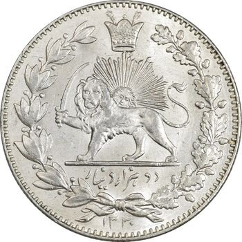 سکه 2000 دینار 1330 خطی - شیر متفاوت - MS62 - احمد شاه