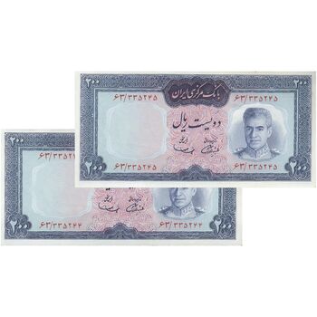 اسکناس 200 ریال (آموزگار - سمیعی) - جفت - UNC60 - محمد رضا شاه