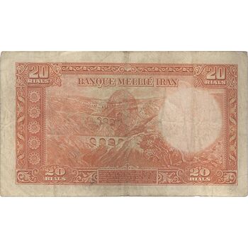 اسکناس 20 ریال پشت لاتین - مهر همرنگ - تک - VF35 - رضا شاه