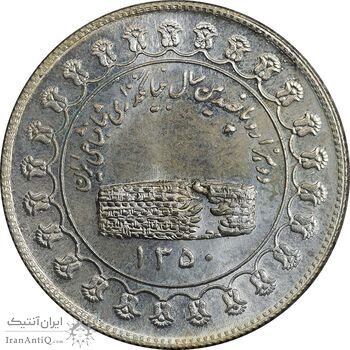 مدال یادبود نقره منشور کوروش بزرگ 1350 - MS64 - محمد رضا شاه