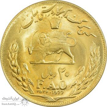 سکه 20 ریال 2536 فائو (گندم) طلایی - MS63 - محمد رضا شاه