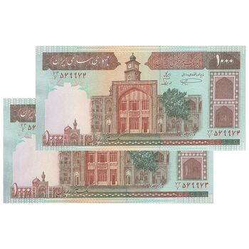 اسکناس 1000 ریال (نمازی - نوربخش) شماره بزرگ - جفت - AU55 - جمهوری اسلامی