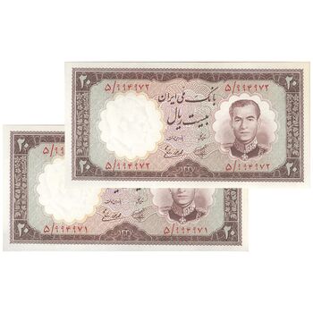 اسکناس 20 ریال 1337 - جفت - UNC62 - محمد رضا شاه