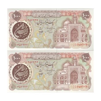 اسکناس 1000 ریال (اردلان - مولوی) سورشارژ قهوه ای - جفت - UNC64 - جمهوری اسلامی
