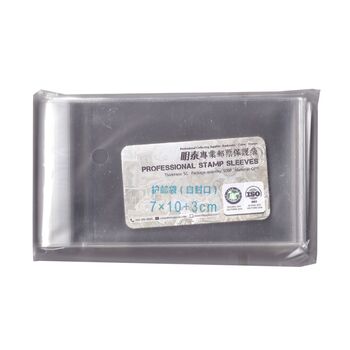 این محصول شامل یک بسته ی 50 عددی از اسلیو (کاور) تمبر است که مناسب نگهداری سکه هم می باشد. ابعاد هر کاور 7 در 10 سانتیمتر میباشد.