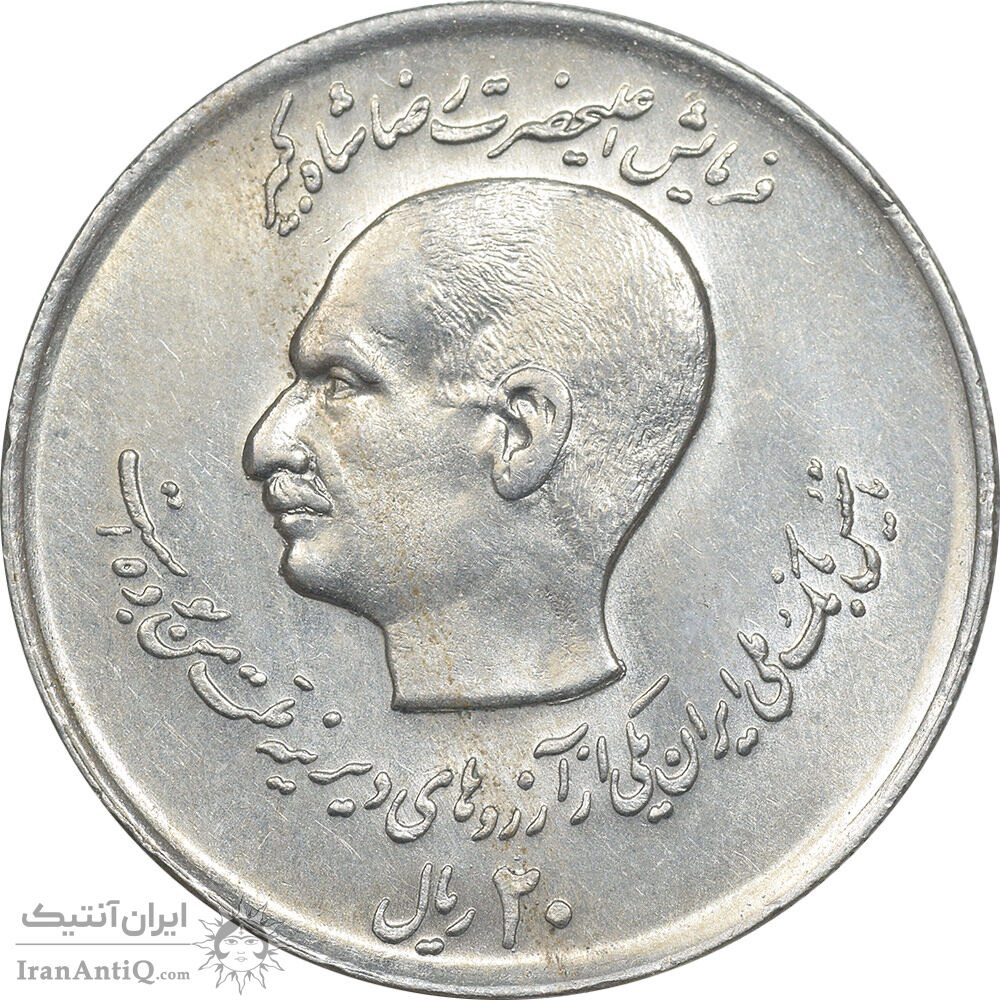 سکه 20 ریال 1357 - دو کله - AU55 - محمد رضا شاه