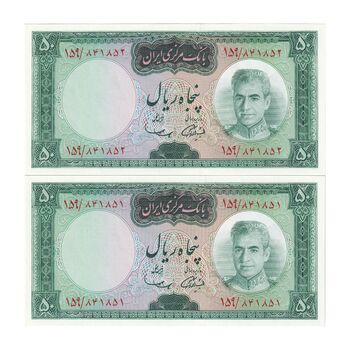 اسکناس 50 ریال (آموزگار - سمیعی) - جفت - UNC63 - محمد رضا شاه