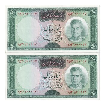 اسکناس 50 ریال (آموزگار - سمیعی) - جفت - UNC61 - محمد رضا شاه