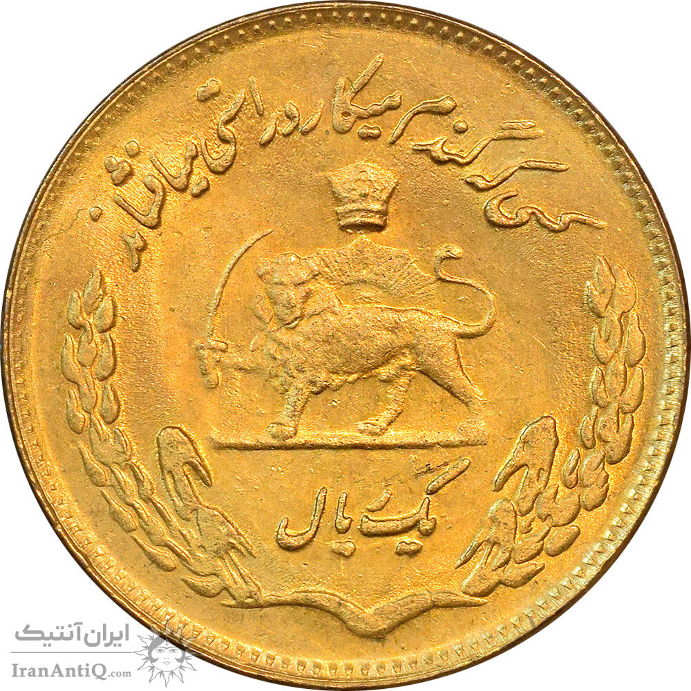 iran 1 rial 1351 Coin F.A.O - Golden - MS63 - Mohammad Reza shah