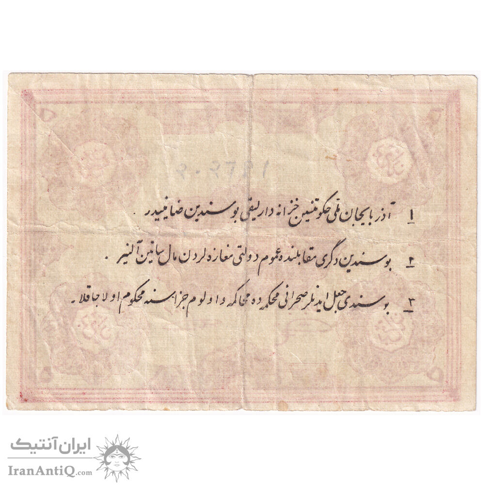اسکناس 5 قران حزب دموکرات آذربایجان - تک - VF25