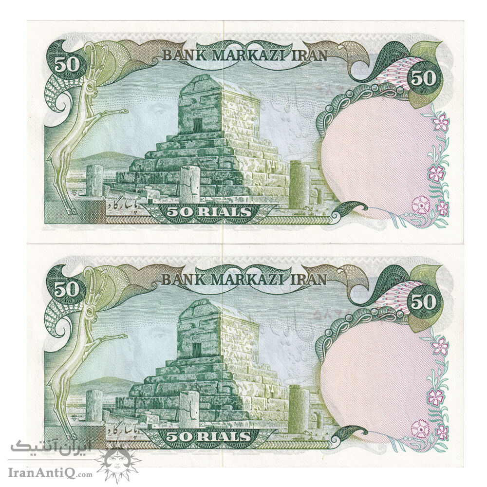 اسکناس 50 ریال (آموزگار - یگانه) - جفت - UNC62 - محمد رضا شاه