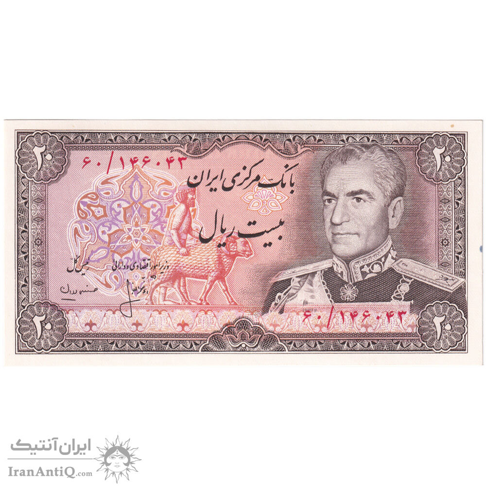 اسکناس 20 ریال (انصاری - مهران) ریال باز - تک - UNC63 - محمد رضا شاه