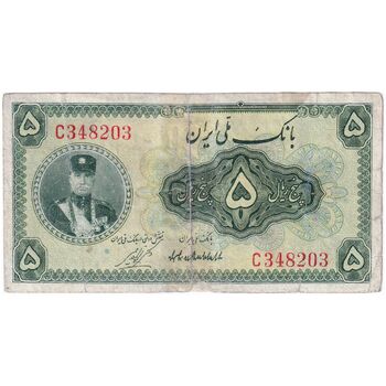 اسکناس 5 ریال کلاه کوچک - تک - F - رضا شاه