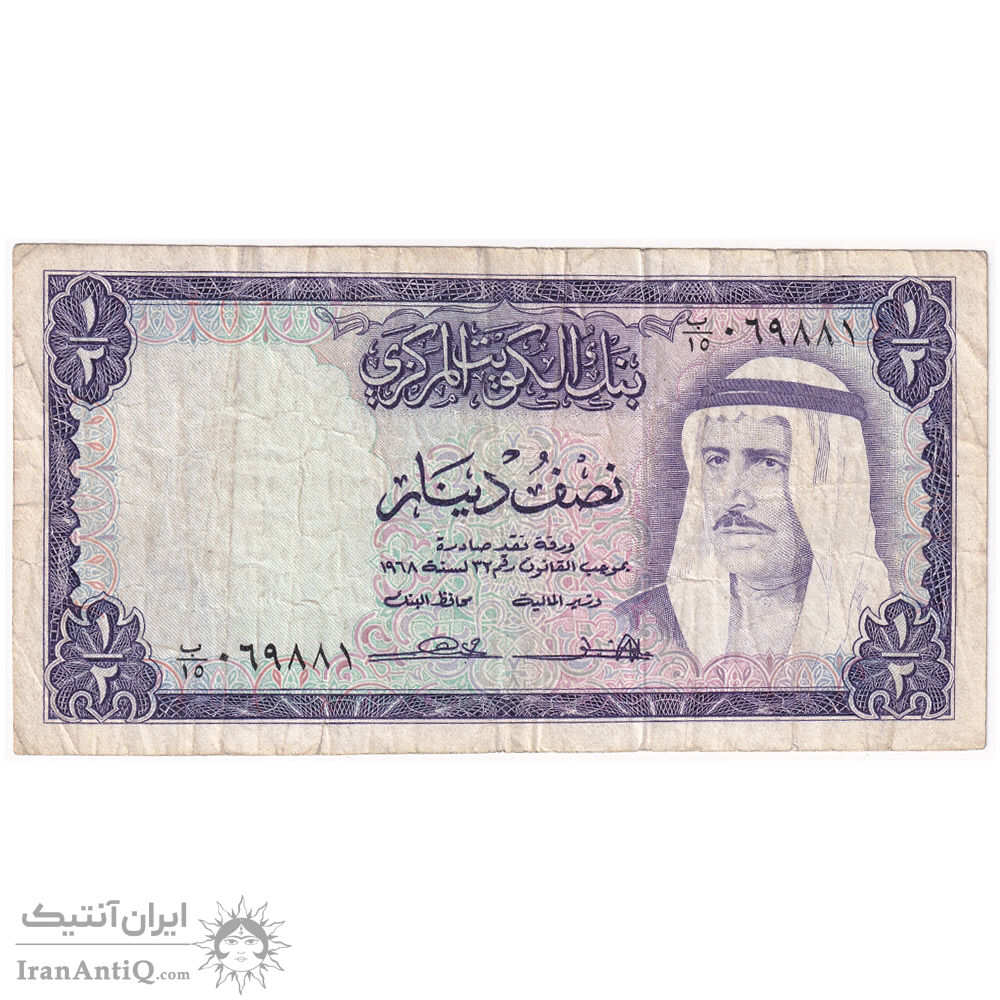 اسکناس 1/2 دینار 1968 صباح سالم الصباح - تک - VF - کویت