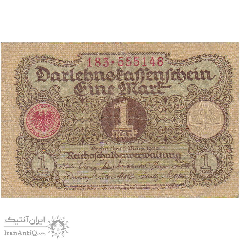 اسکناس 1 مارک 1920 جمهوری وایمار - تک - VF - آلمان