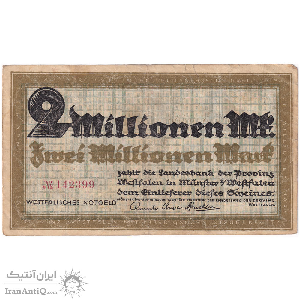 اسکناس 2000000 مارک 1923 جمهوری وایمار - تک - VF - آلمان