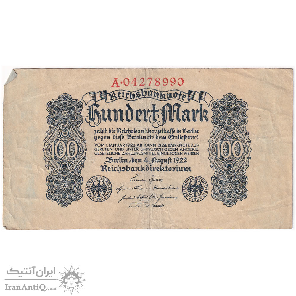 اسکناس 100 مارک 1922 جمهوری وایمار - تک - VF - آلمان