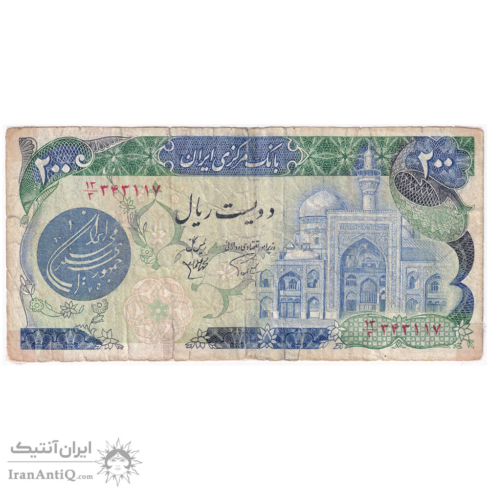 اسکناس 200 ریال (اردلان - مولوی) بدون فیلیگران - تک - VF20 - جمهوری اسلامی