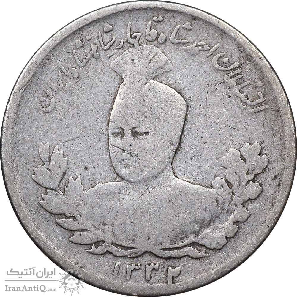 سکه 500 دینار 1332 تصویری - VF25 - احمد شاه