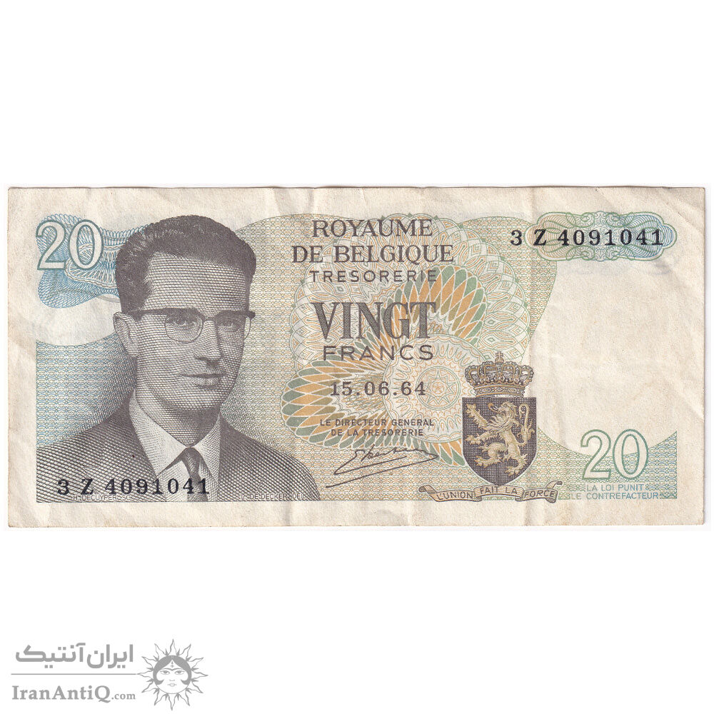 اسکناس 20 فرانک 1964 بودئون یکم - تک - VF - بلژیک