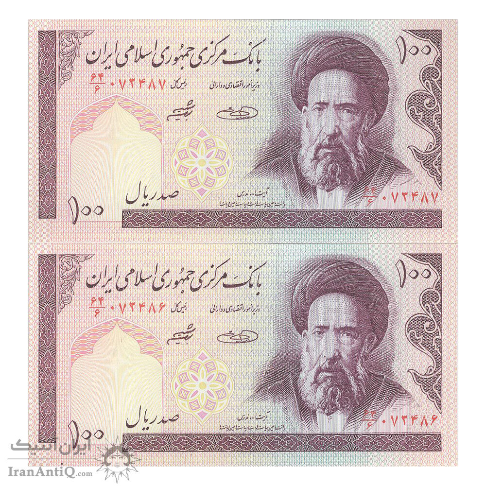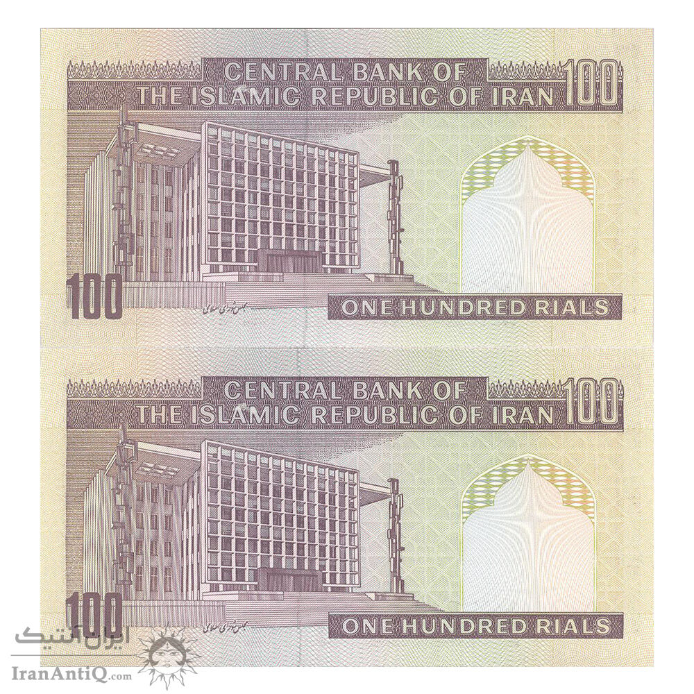 اسکناس 100 ریال (حسینی - شیبانی) فیلیگران الله - جفت - UNC63 - جمهوری اسلامی