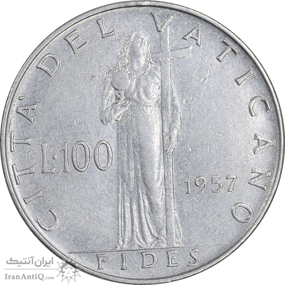 سکه 100 لیره 1957 پیوس دوازدهم - EF45 - واتیکان