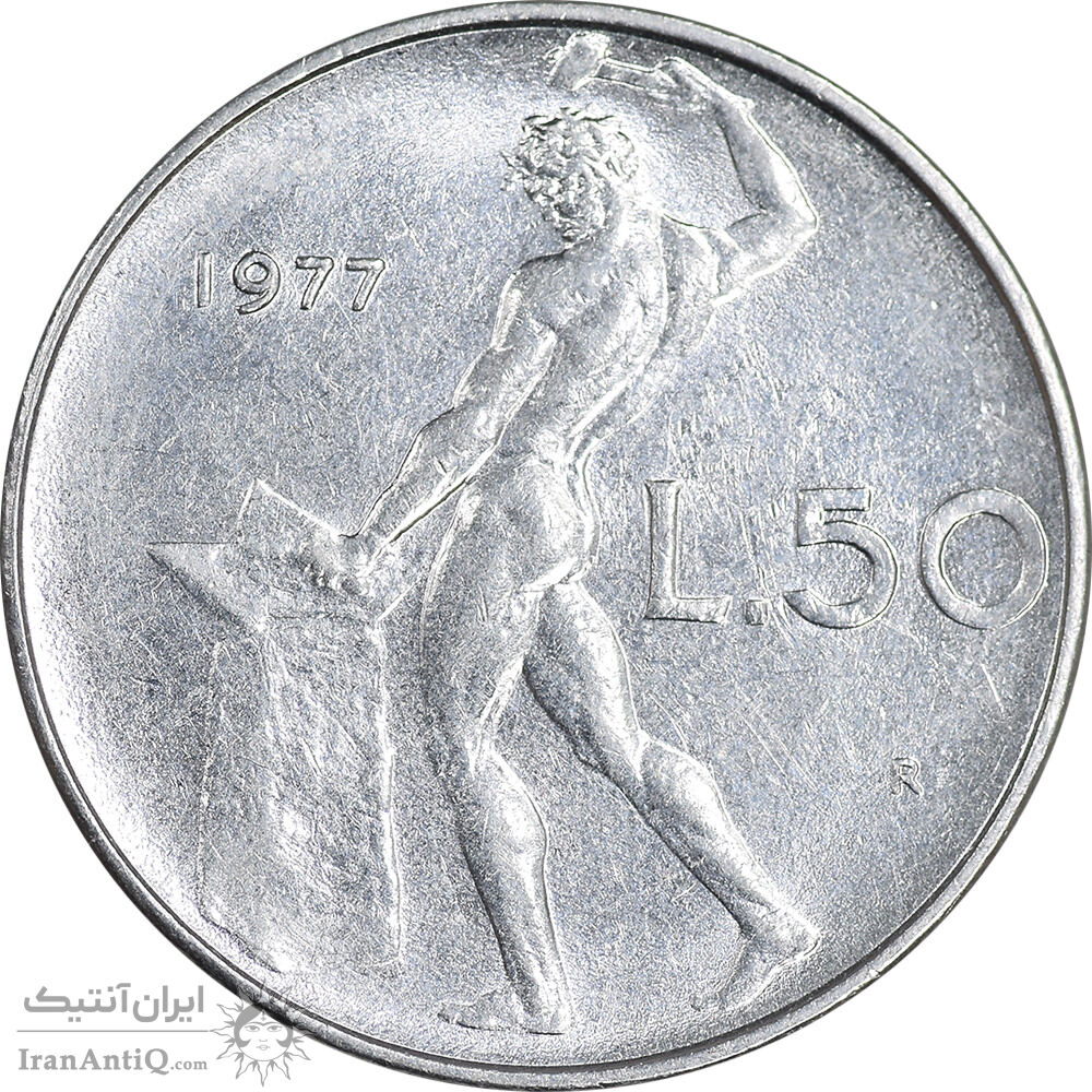 سکه 50 لیره 1977 جمهوری - AU55 - ایتالیا