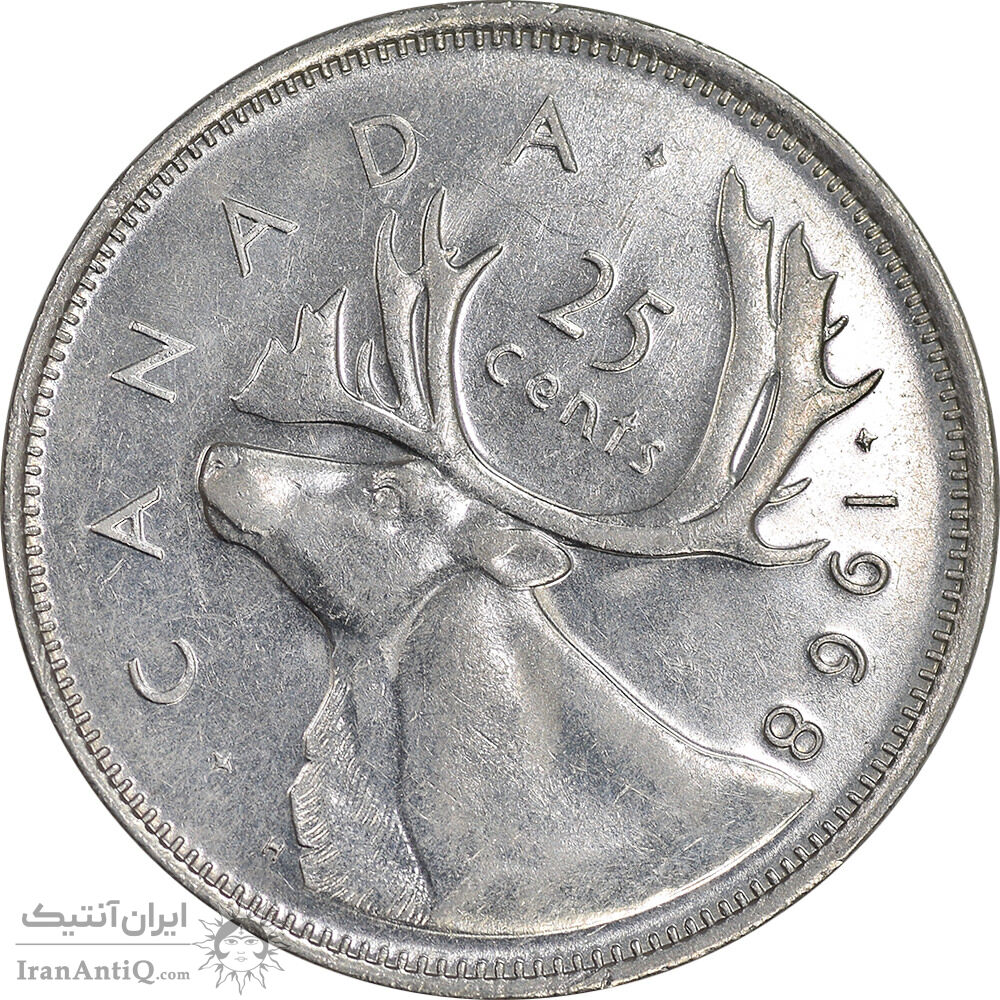 سکه 25 سنت 1968 الیزابت دوم - AU58 - کانادا