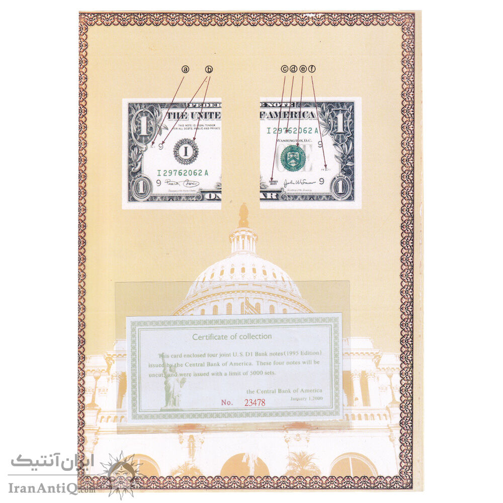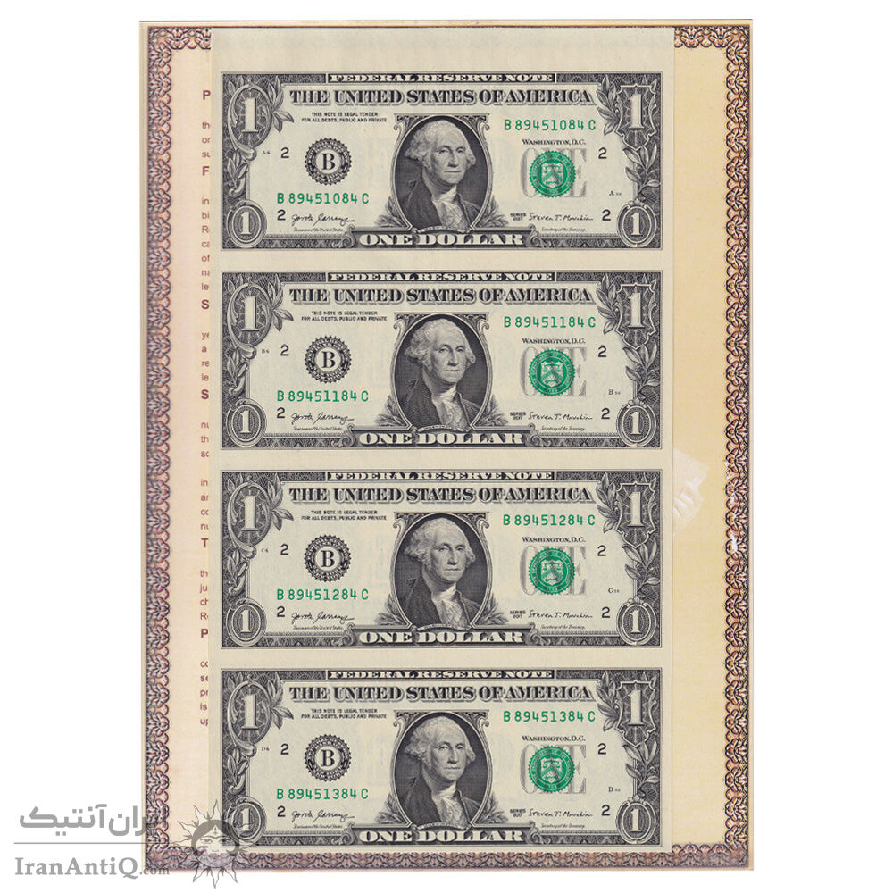 این محصول شامل 4 برگ اسکناس 1 دلاری کات نشده می باشد.