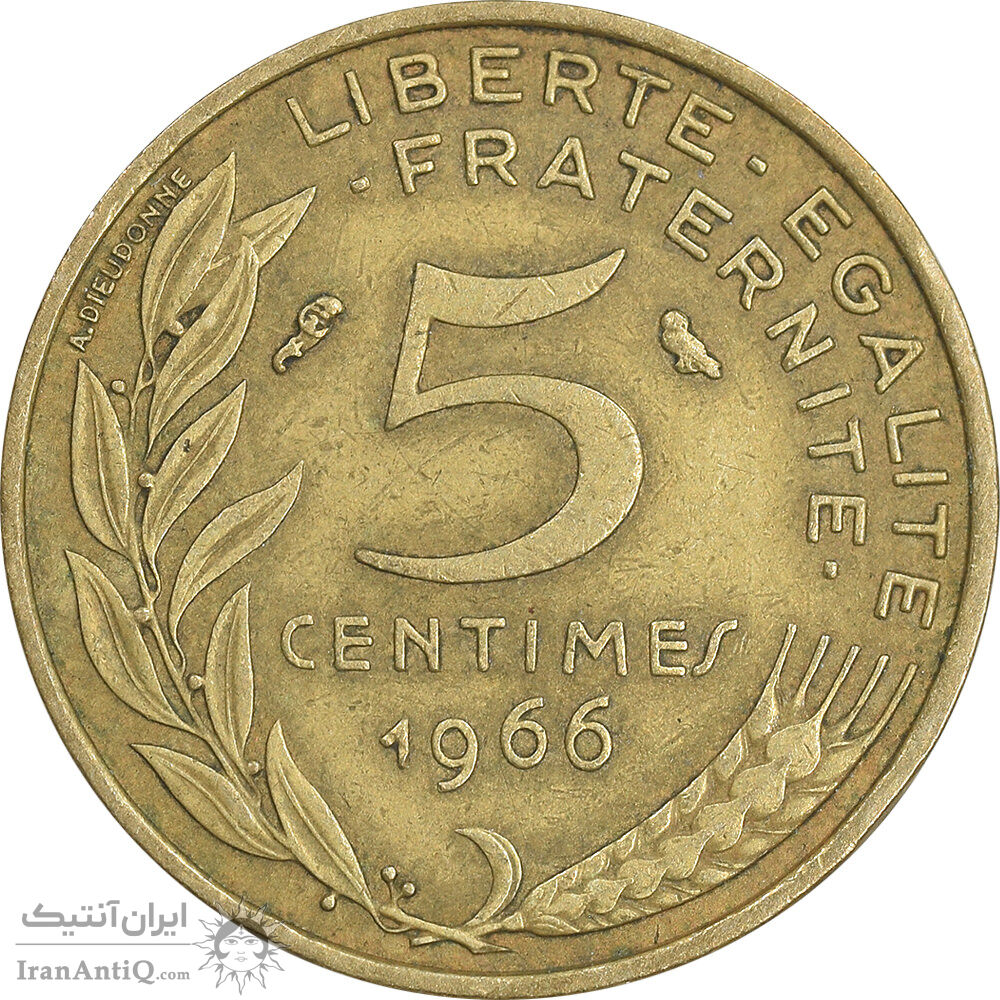سکه 5 سانتیم 1966 جمهوری کنونی - ماریان - EF40 - فرانسه